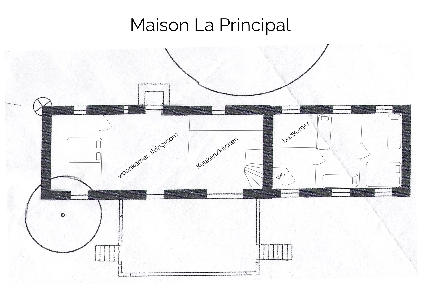 De waslijn bevindt zich in de tuin naast Maison Prancipal. Er zijn meerdere buiten banken, stoeltjes, tafels en hangmatten verdeeld over terras en tuin. Gehele complex is Wifi-free om extra van de omgeving te genieten. Het huis wordt met houtkachel en open haard verwarmd. Schommels, hangmatten, slingertouw en trampoline geheel op eigen risico.